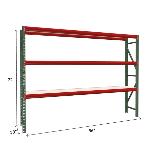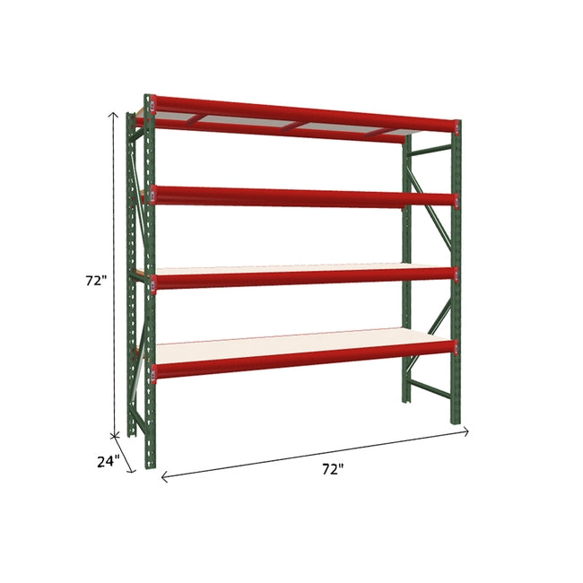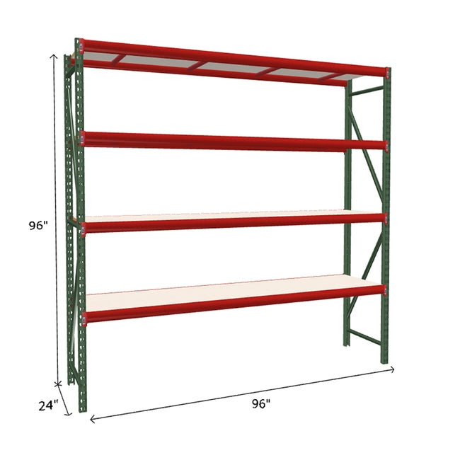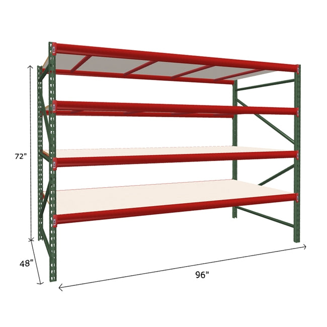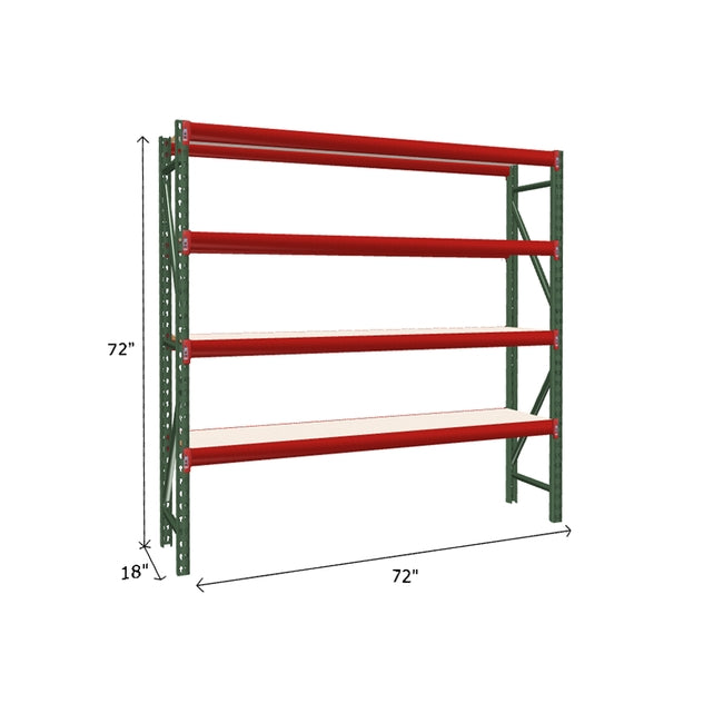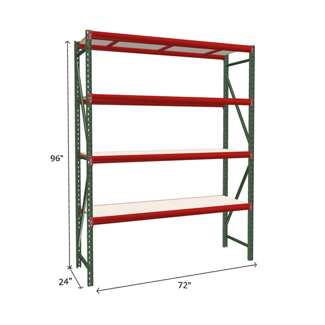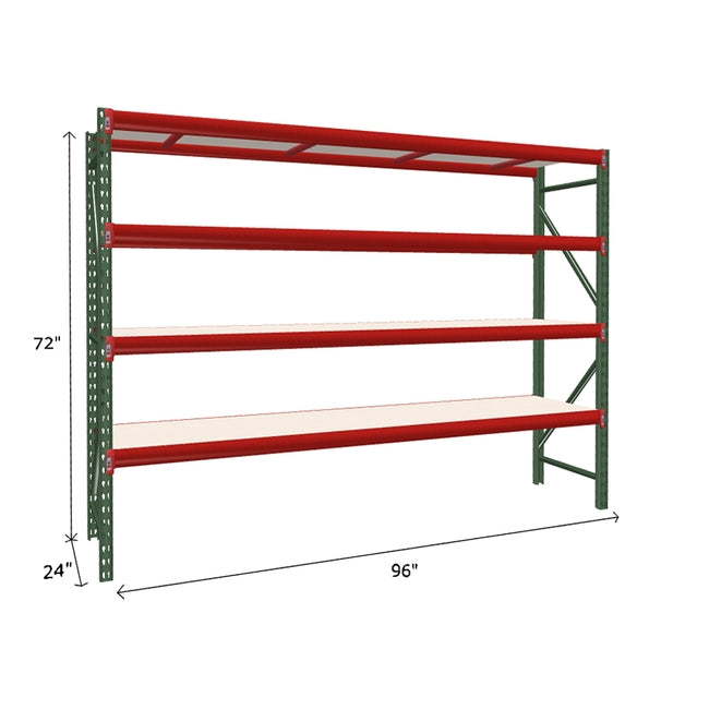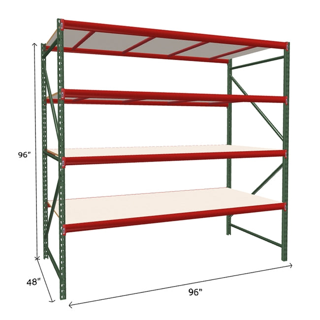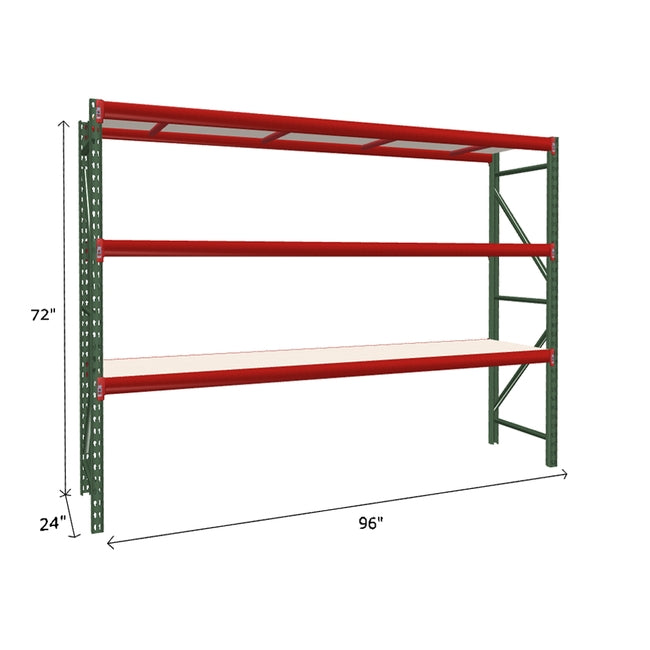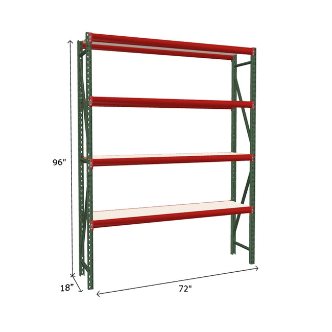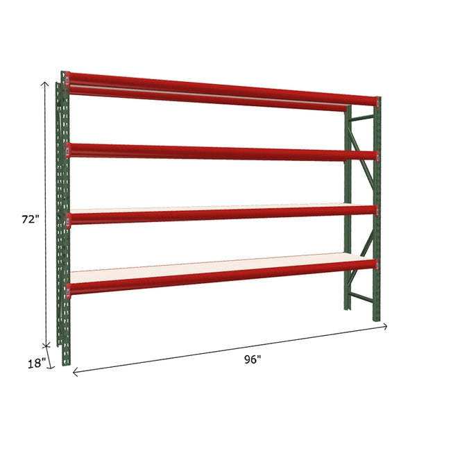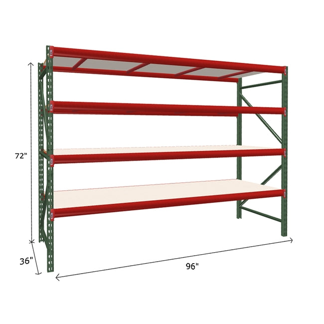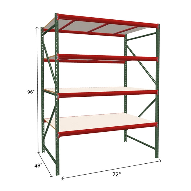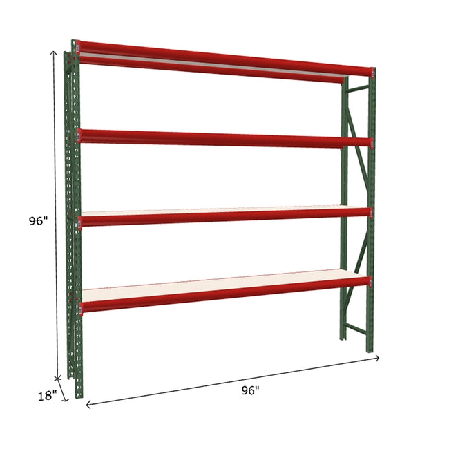 FastRak™ heavy-duty bulk storage shelving starter unit. Featuring our heavier duty bolted uprights that come fully assembled. Comes with 3/4" White Laminated Particle Board Decking for an enhanced appearance, less dust buildup and easier storage of cartons and supplies.