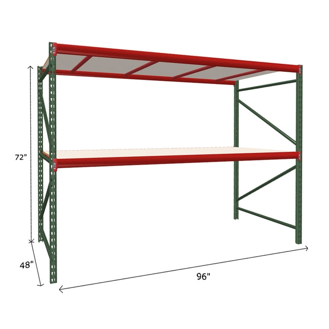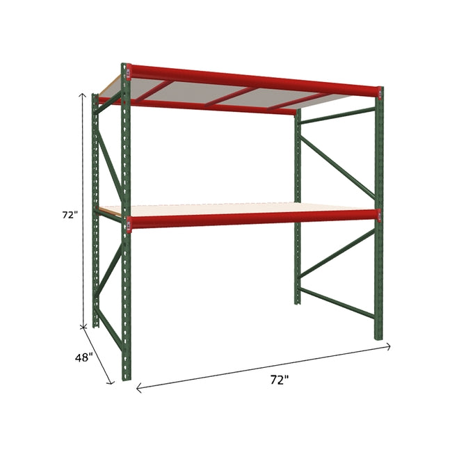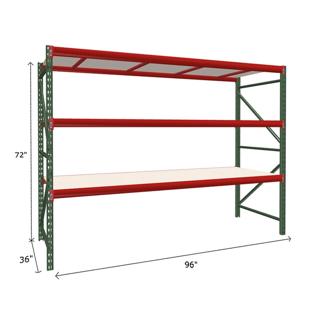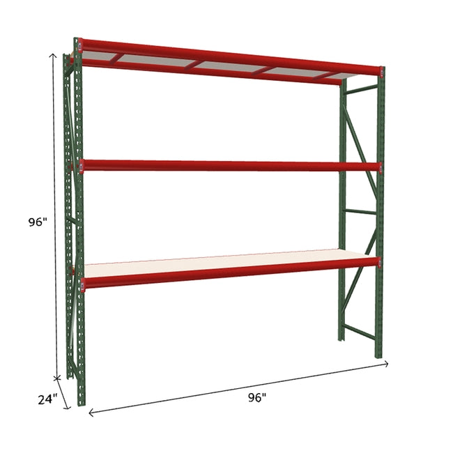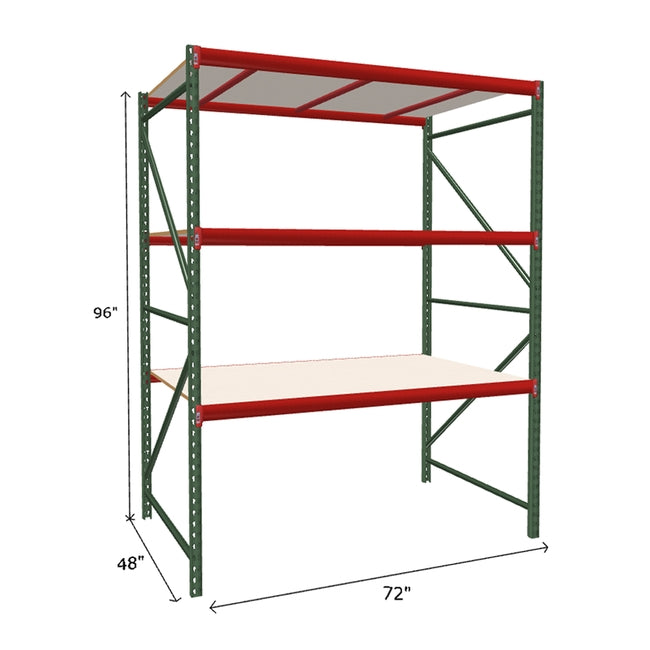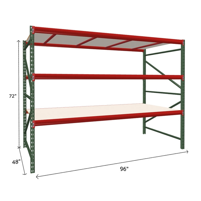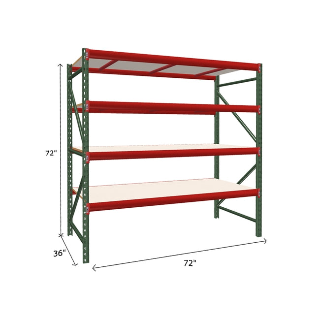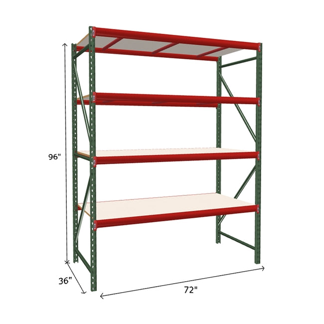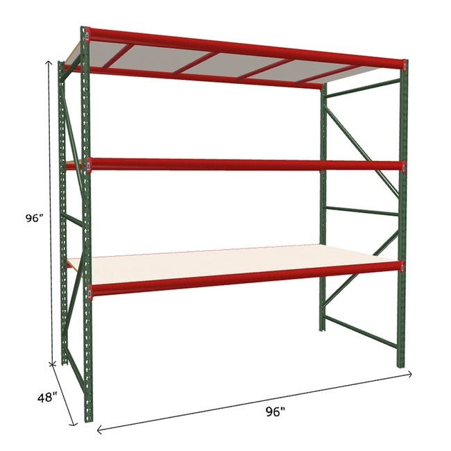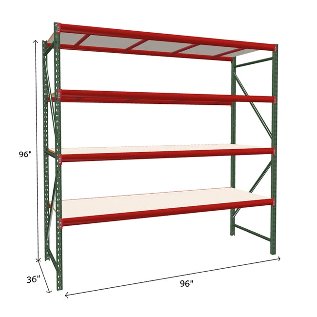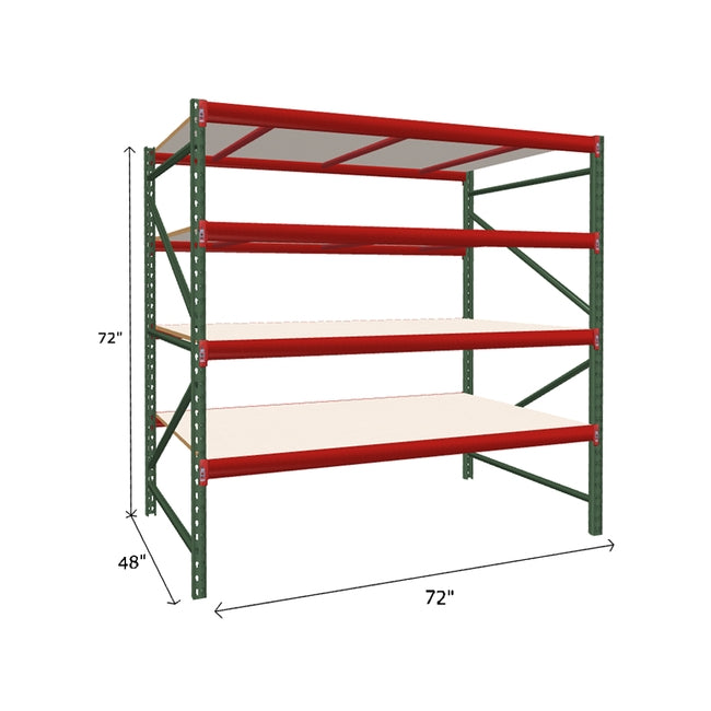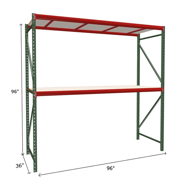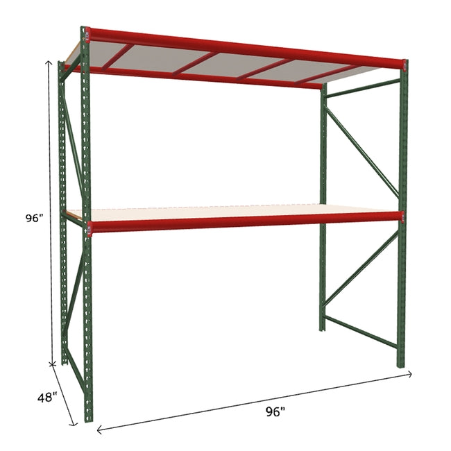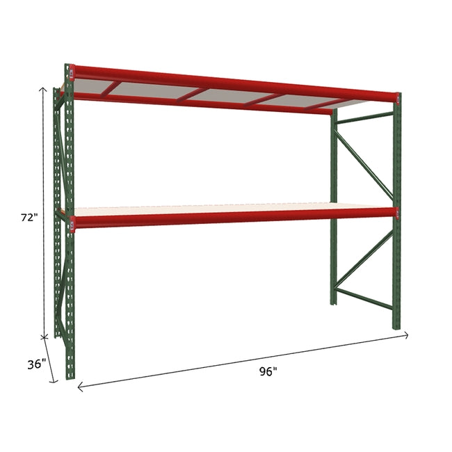 FastRak™ heavy-duty bulk storage shelving starter unit. Featuring our heavier duty bolted uprights that come fully assembled. Comes with 3/4" White Laminated Particle Board Decking for an enhanced appearance, less dust buildup and easier storage of cartons and supplies.