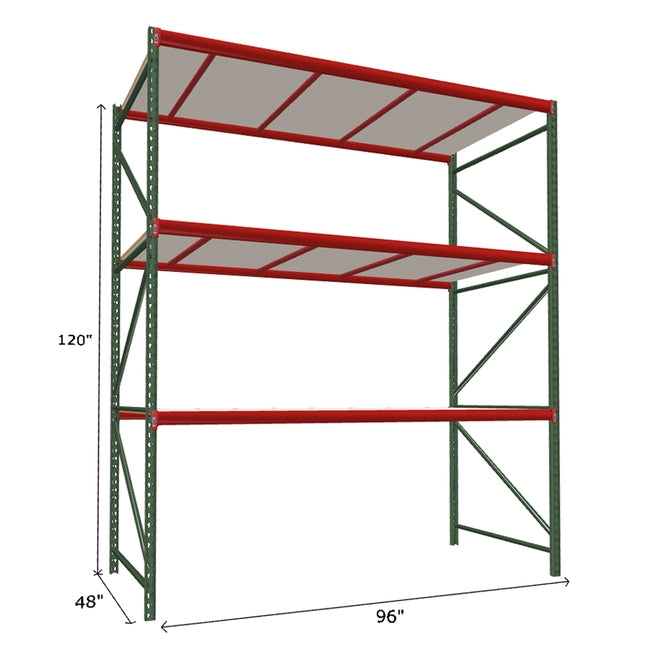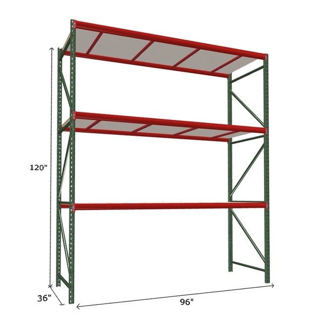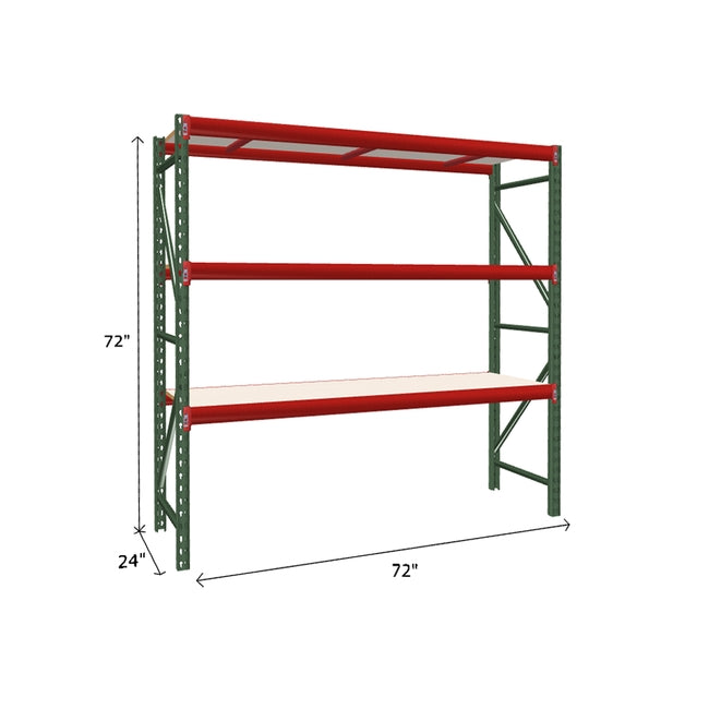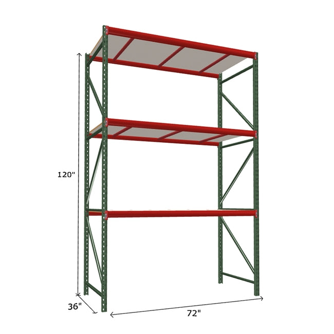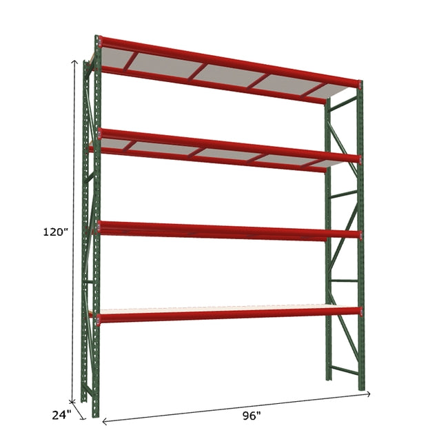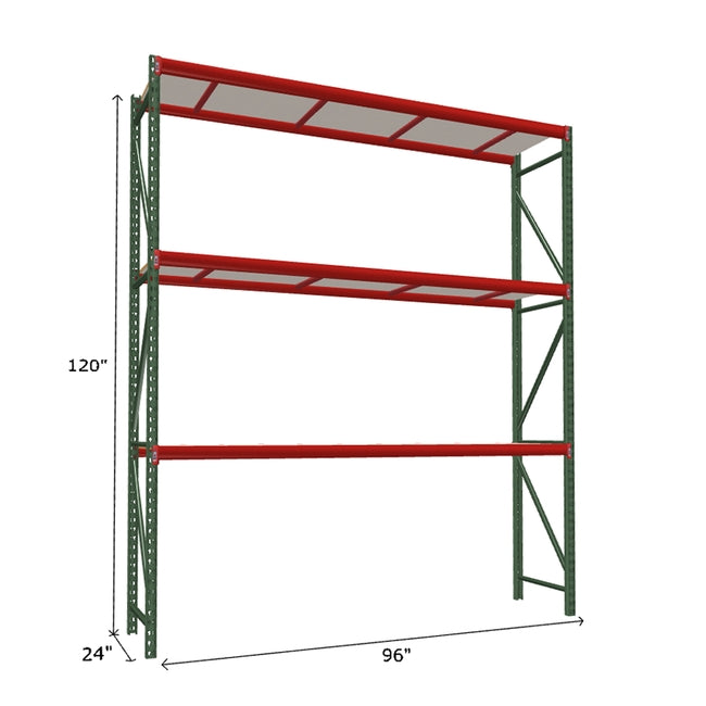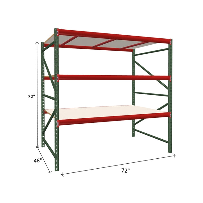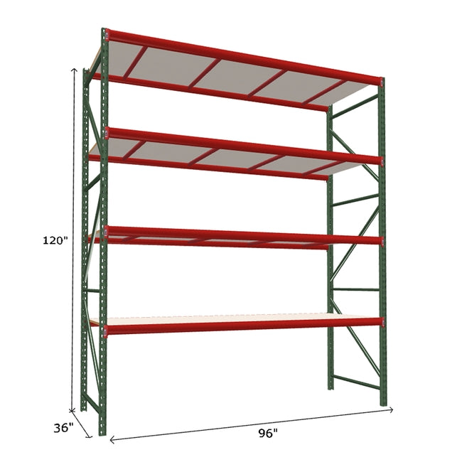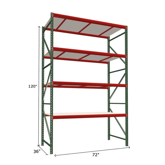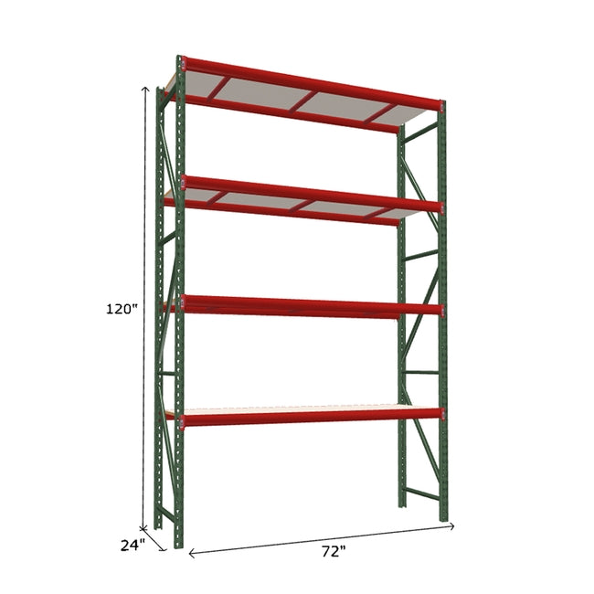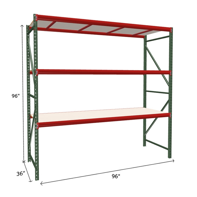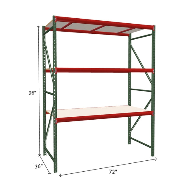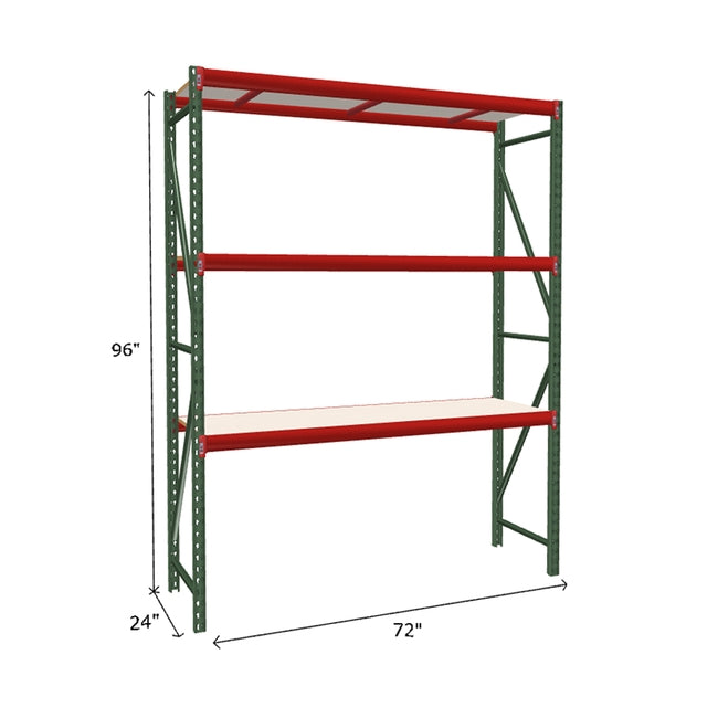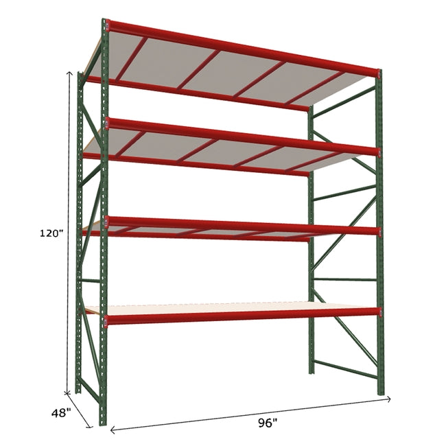 FastRak™ heavy-duty bulk storage shelving starter unit. Featuring our heavier duty bolted uprights that come fully assembled. Comes with 3/4" White Laminated Particle Board Decking for an enhanced appearance, less dust buildup and easier storage of cartons and supplies.