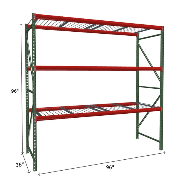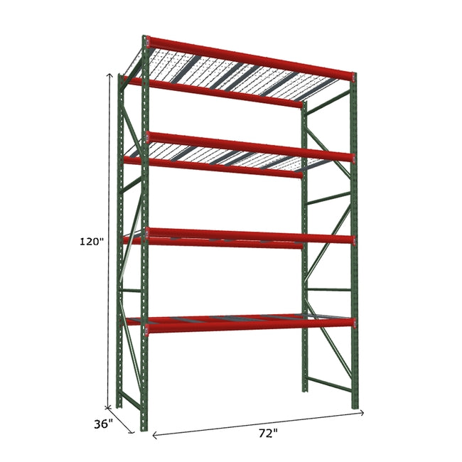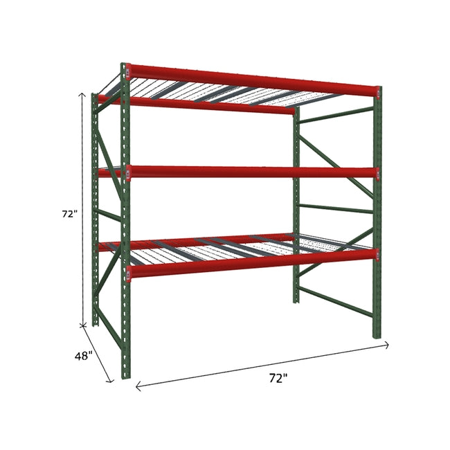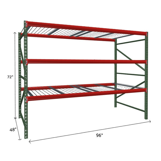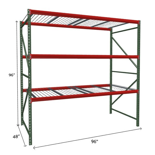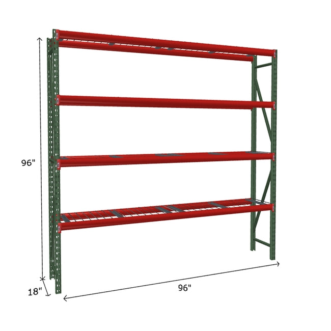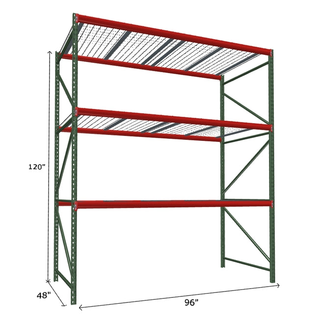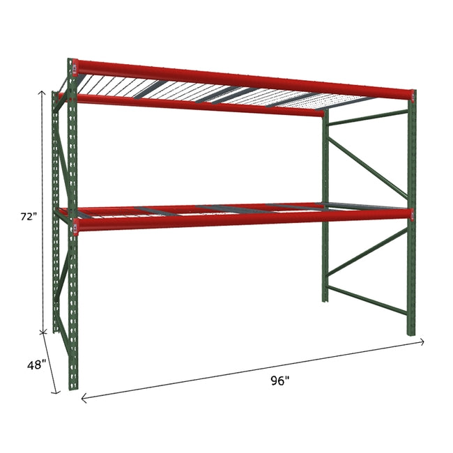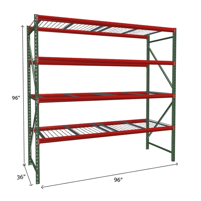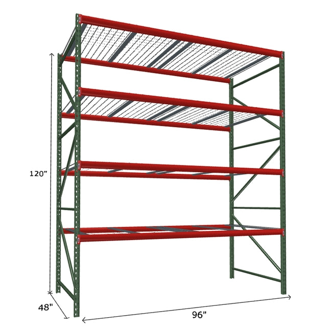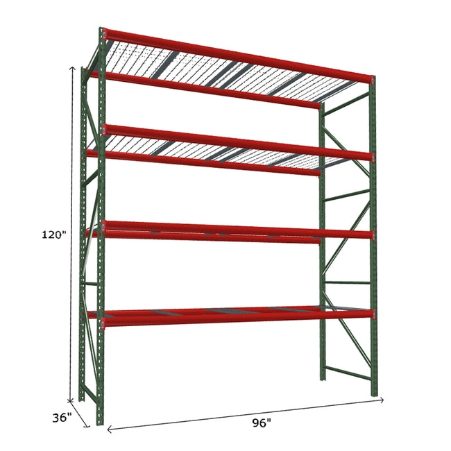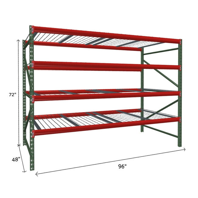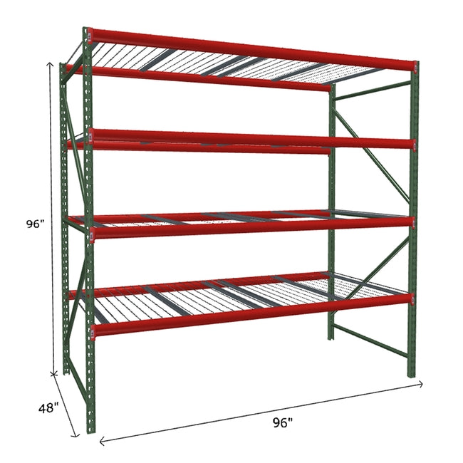 A quick way to create warehouse storage space the FastRak™ heavy-duty bulk storage shelving Starter Unit with Wire Mesh Decking offers increases air flow and visibility. Featuring our heavier duty bolted uprights that come fully assembled and offer the advantage of component replacement in case of damage. Available with 3/4" Particle Board Decking or White Laminated Board Decking. Wire decks utilize thick 6 gauge (4.5mm) wire and 16 gauge steel supports.