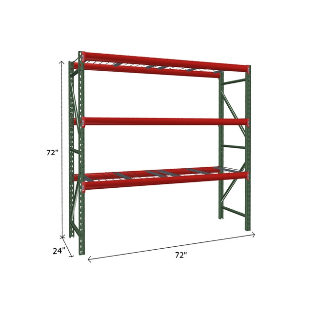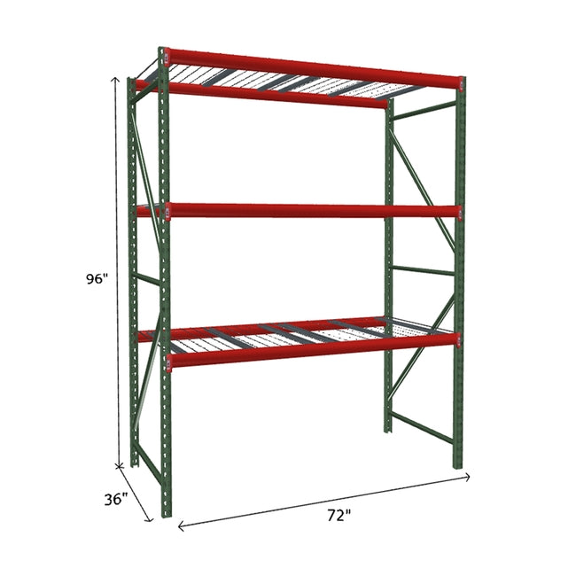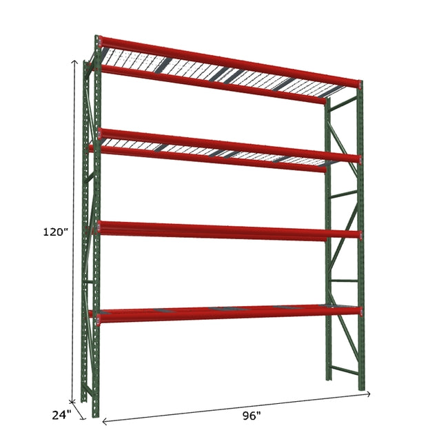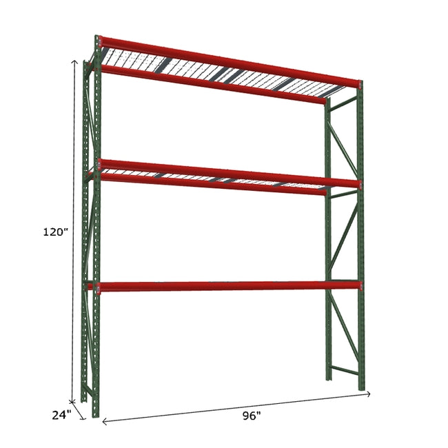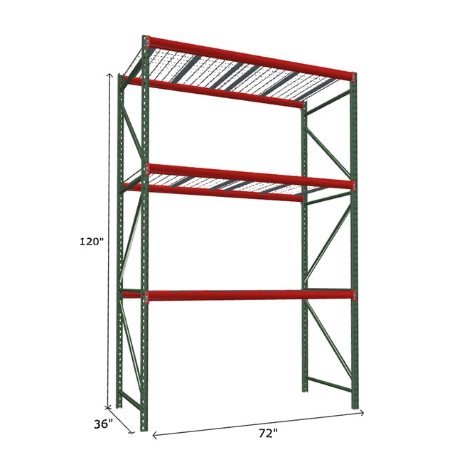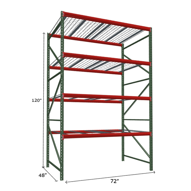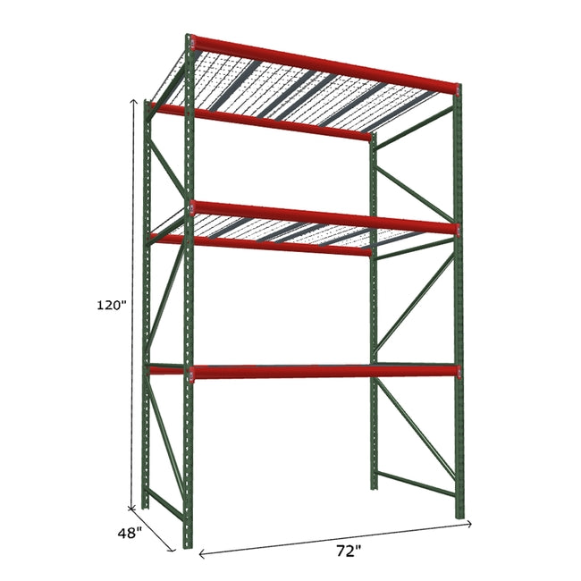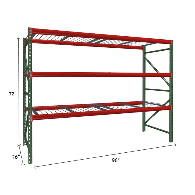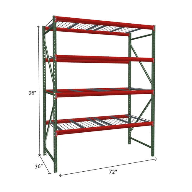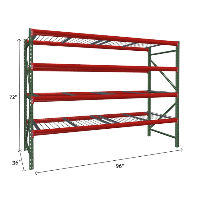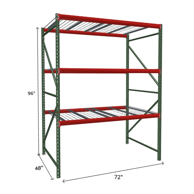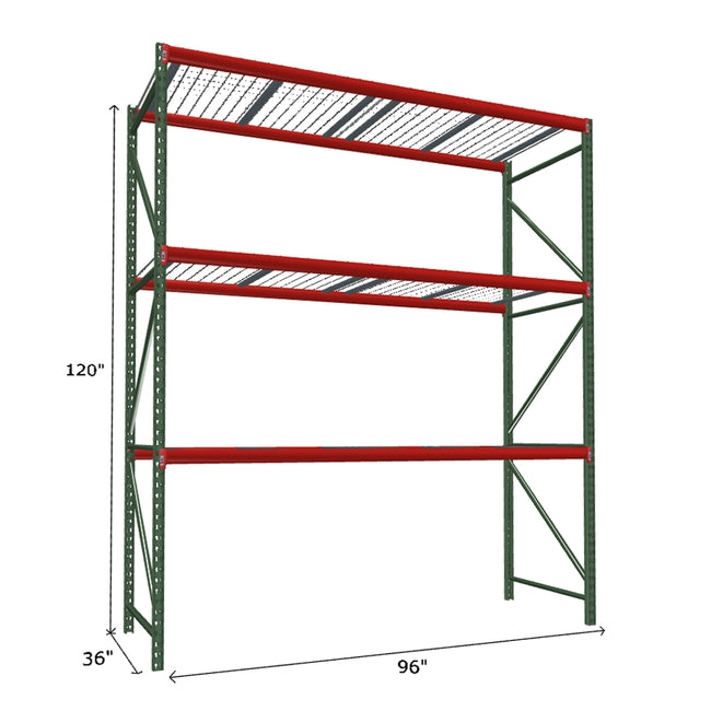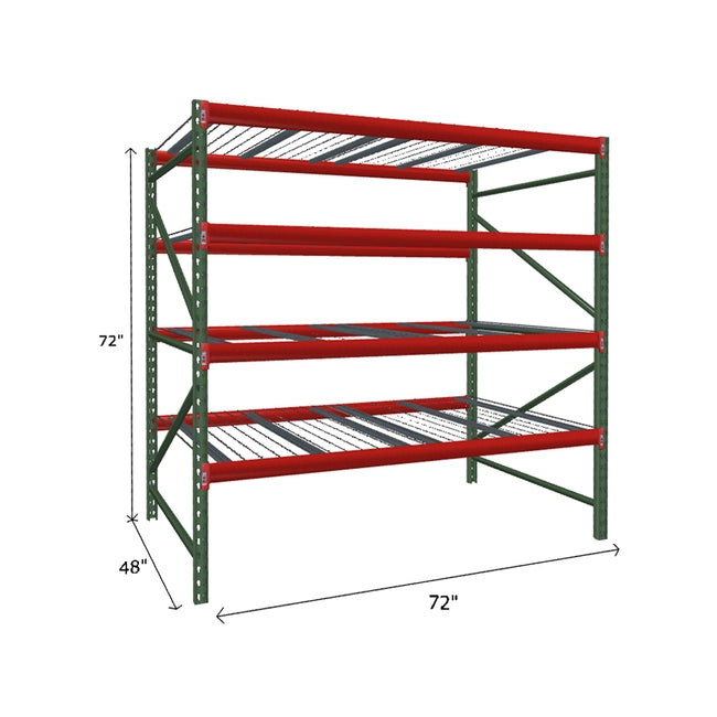 A quick way to create warehouse storage space the FastRak™ heavy-duty bulk storage shelving Starter Unit with Wire Mesh Decking offers increases air flow and visibility. Featuring our heavier duty bolted uprights that come fully assembled and offer the advantage of component replacement in case of damage. Available with 3/4" Particle Board Decking or White Laminated Board Decking. Wire decks utilize thick 6 gauge (4.5mm) wire and 16 gauge steel supports.