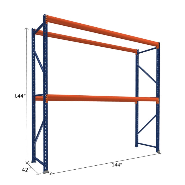 Pallet Rack Starter Units come with two pre-assembled upright and 4 beams (supports or wire deck sold separately. Our heavy duty pallet rack features 3" x 3" columns and 5" x 8" seismic base plates. Constructed from 14 gauge steel, our uprights offer a maximum capacity of 20,867 lbs. (based on a maximum shelf spacing of 48"). The new bolt together design provides a lower cost of ownership because components can be easily replaced when damaged during use, while traditional welded uprights require replacement of the entire upright. Pallet rack beams offer an improved safety clip which allows for easy replacement of damaged clips.