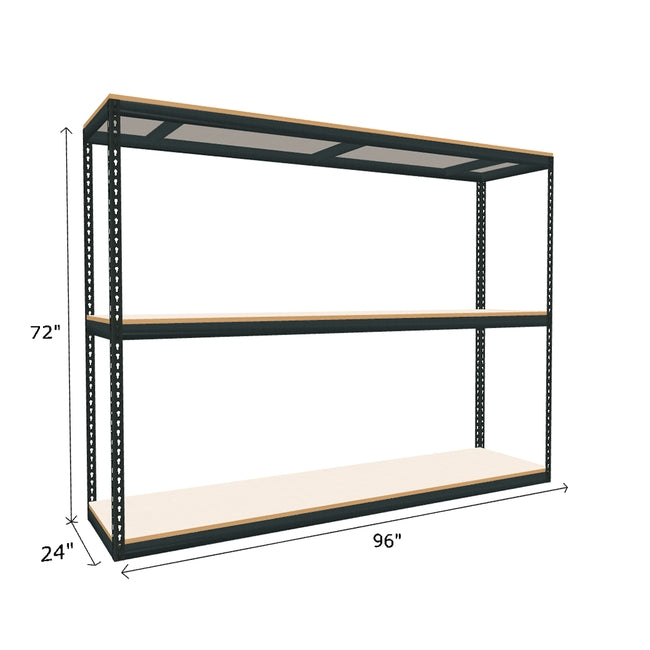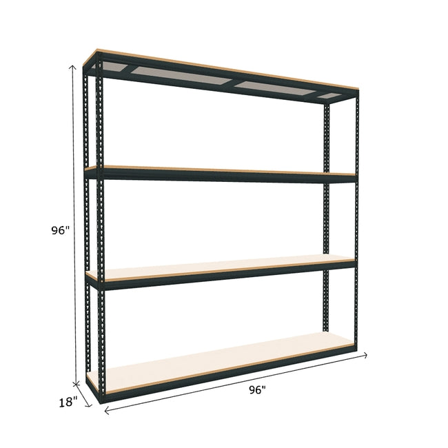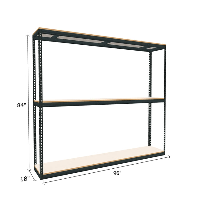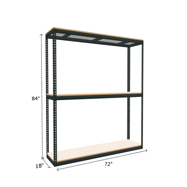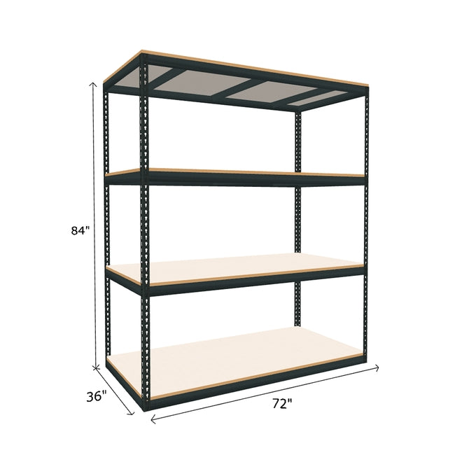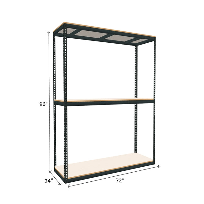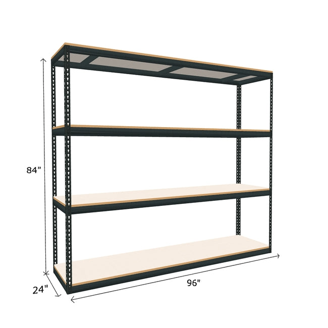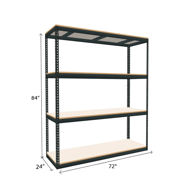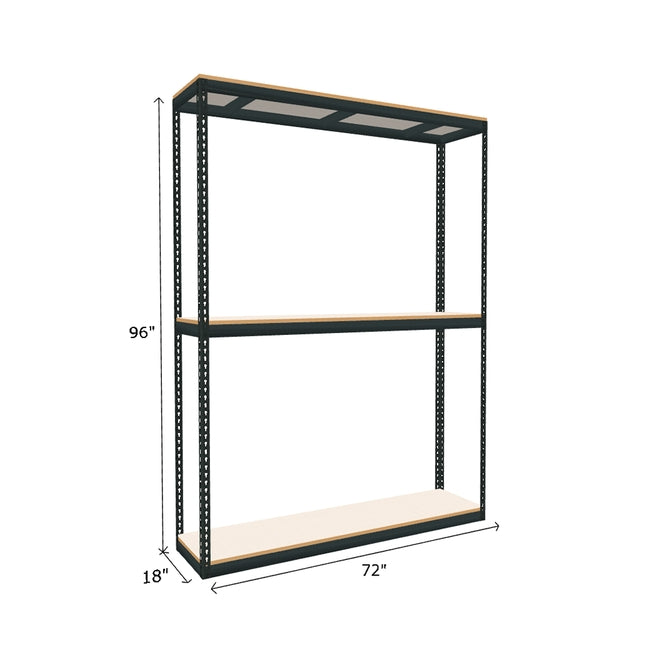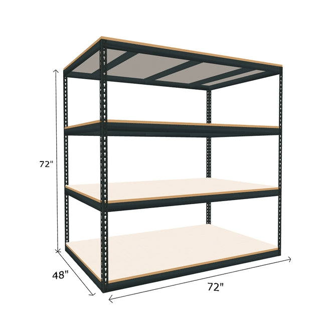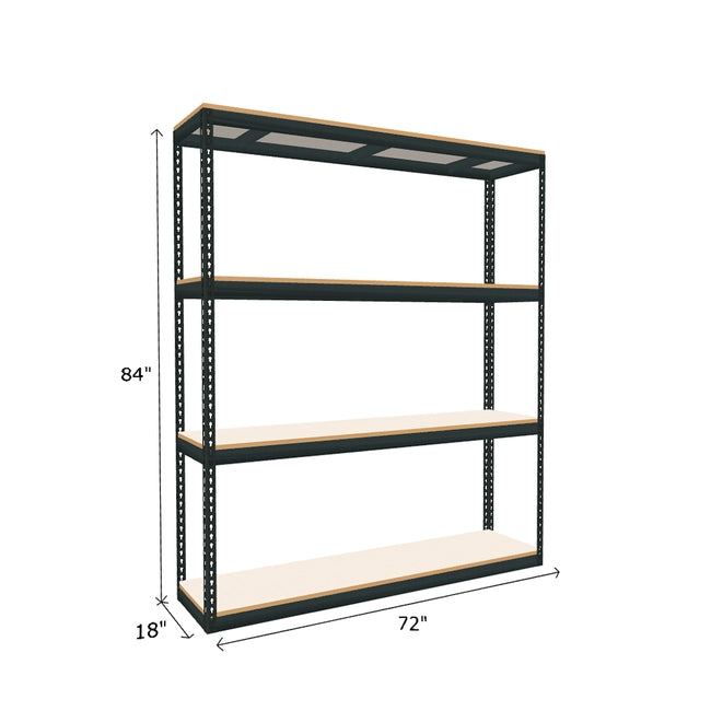 More storage space is achieved on this Super Duty industrial grade boltless shelving thanks to low profile beams. Features Double Rivet Beams at top and bottom of unit forming a rigid structure without the need for troublesome crossbars. White melamine shelves offer easy cleaning and provide 1500 lb. capacity per shelf on this bulk boltless shelving. Expertly constructed from the highest grade materials, our boltless shelving is meant to withstand the wear and tear of warehouses and other industrial applications. Steel frame color: dark gray. Melamine particle board color: white.