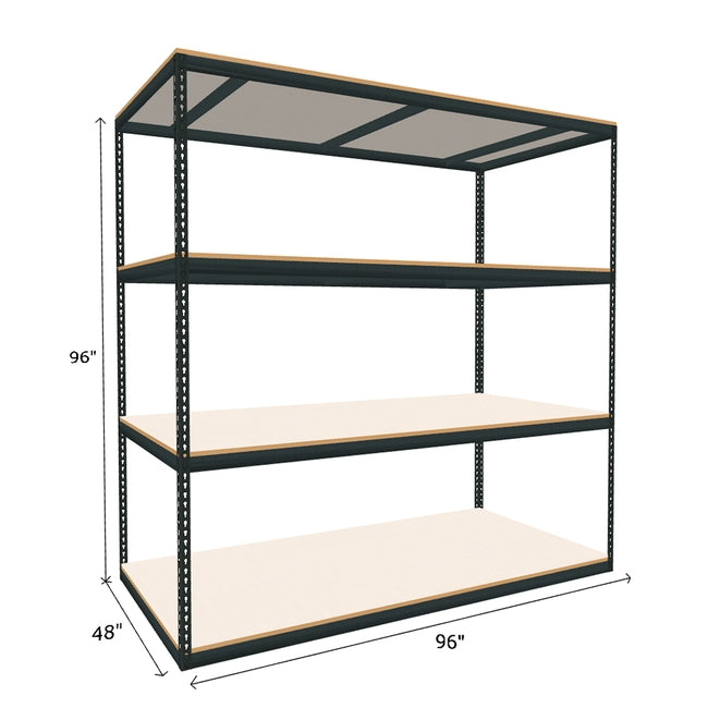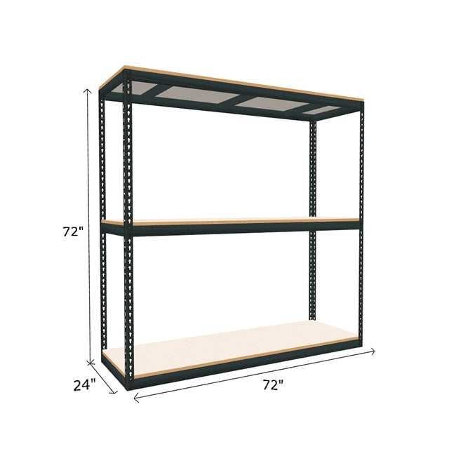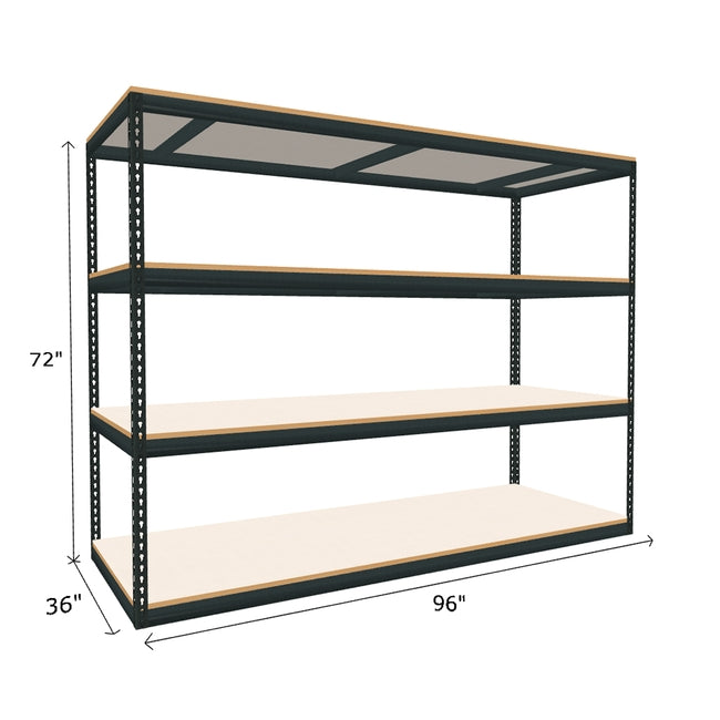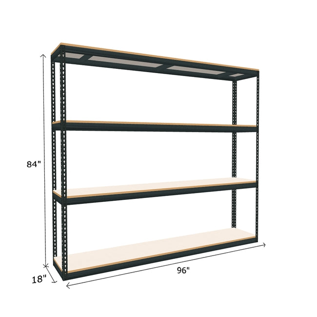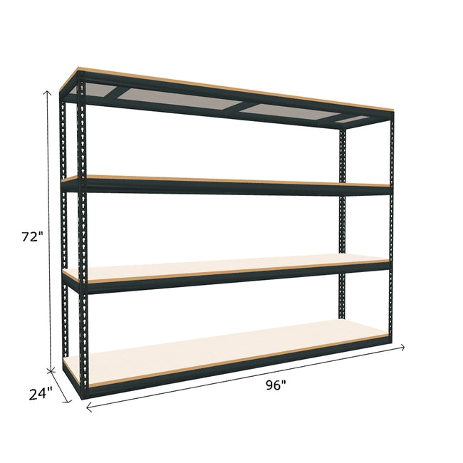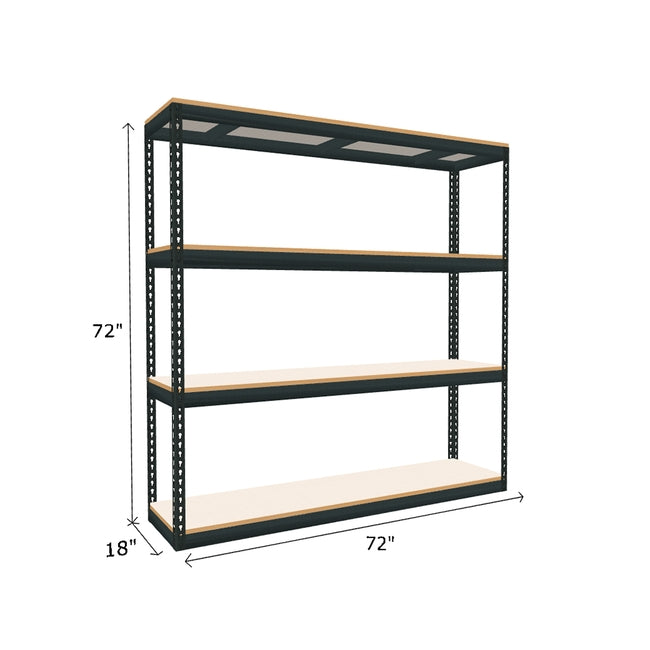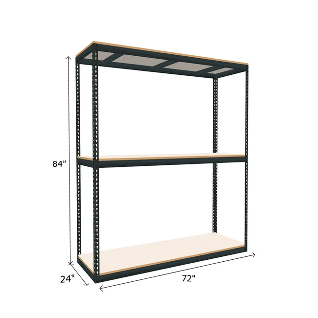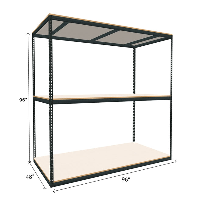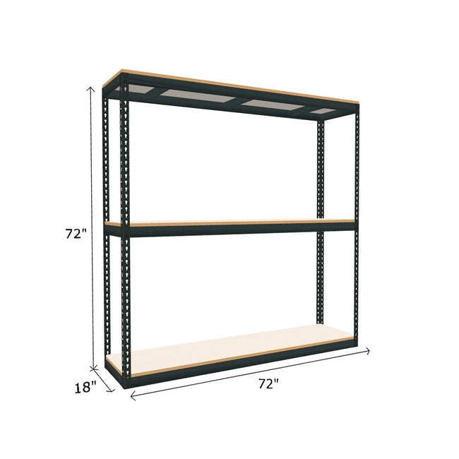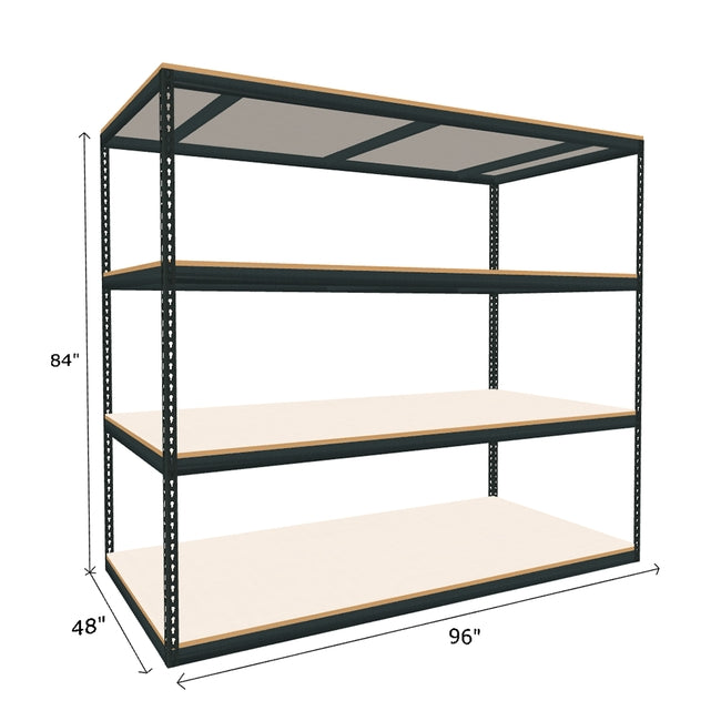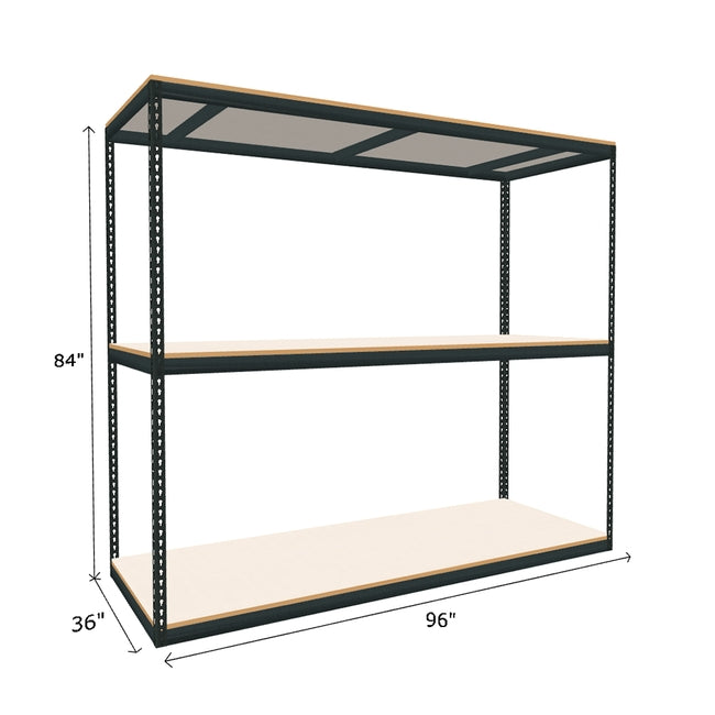 More storage space is achieved on this Super Duty industrial grade boltless shelving thanks to low profile beams. Features Double Rivet Beams at top and bottom of unit forming a rigid structure without the need for troublesome crossbars. White melamine shelves offer easy cleaning and provide 1500 lb. capacity per shelf on this bulk boltless shelving. Expertly constructed from the highest grade materials, our boltless shelving is meant to withstand the wear and tear of warehouses and other industrial applications. Steel frame color: dark gray. Melamine particle board color: white.