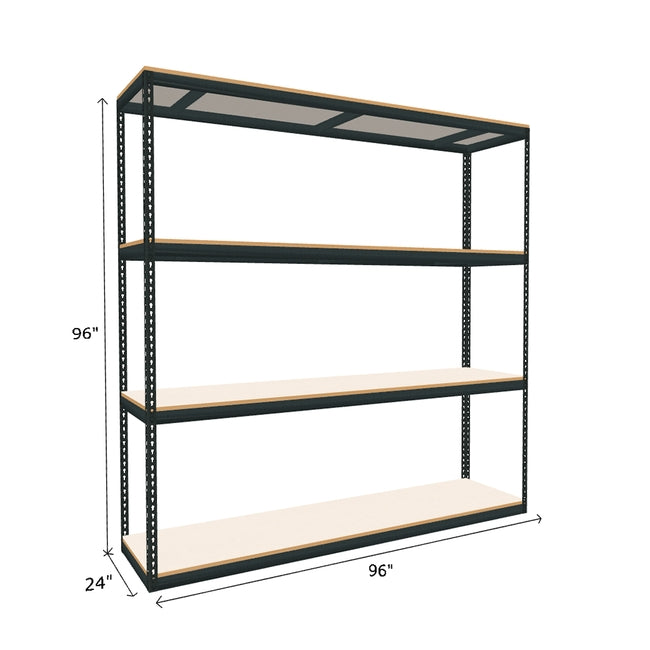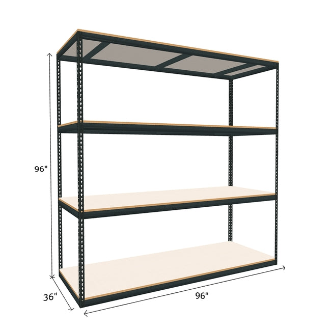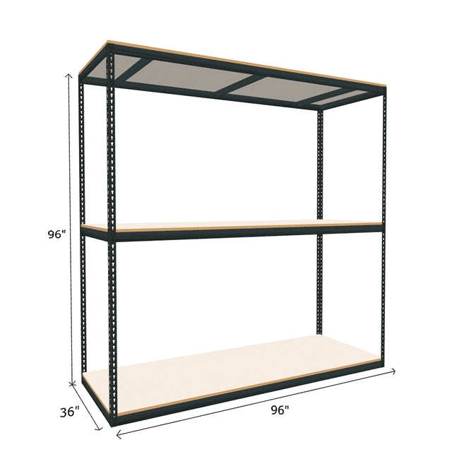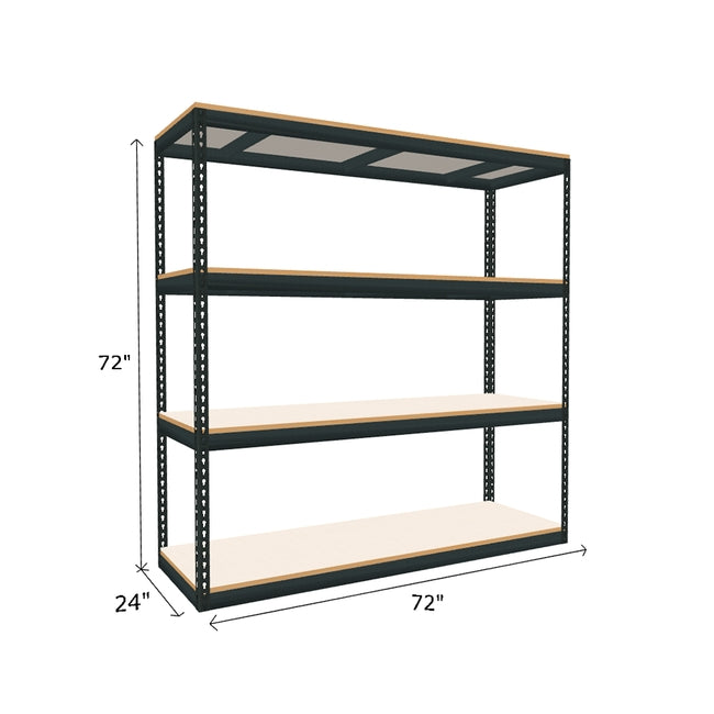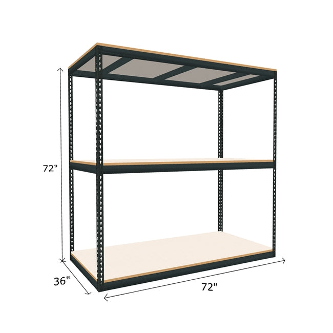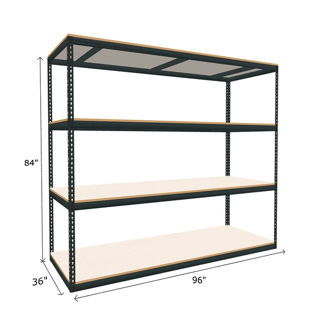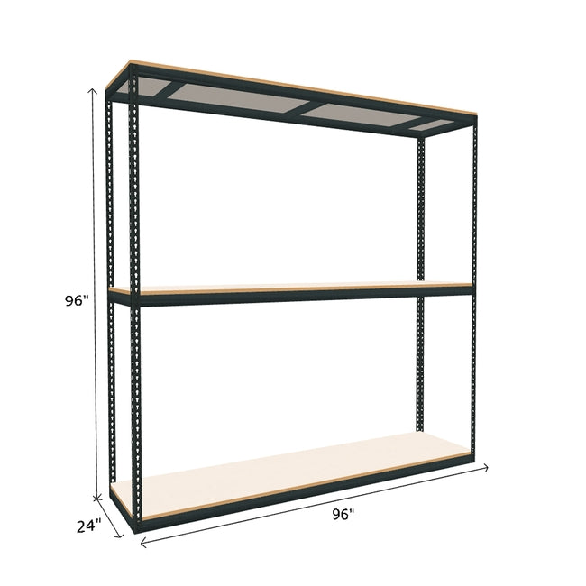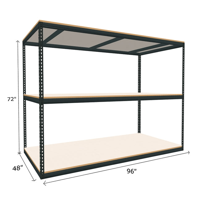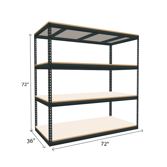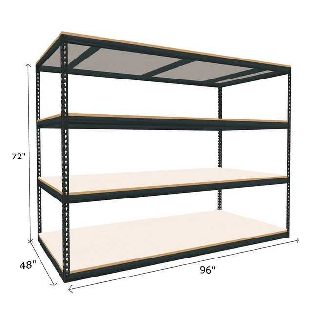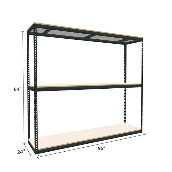 More storage space is achieved on this Super Duty industrial grade boltless shelving thanks to low profile beams. Features Double Rivet Beams at top and bottom of unit forming a rigid structure without the need for troublesome crossbars. White melamine shelves offer easy cleaning and provide 1500 lb. capacity per shelf on this bulk boltless shelving. Expertly constructed from the highest grade materials, our boltless shelving is meant to withstand the wear and tear of warehouses and other industrial applications. Steel frame color: dark gray. Melamine particle board color: white.