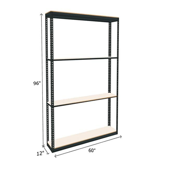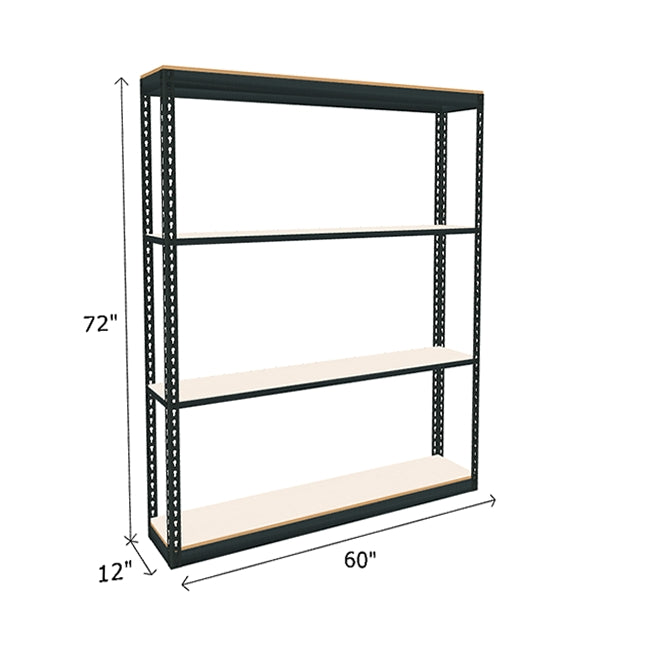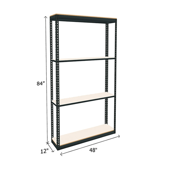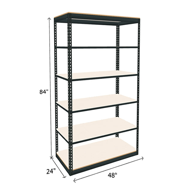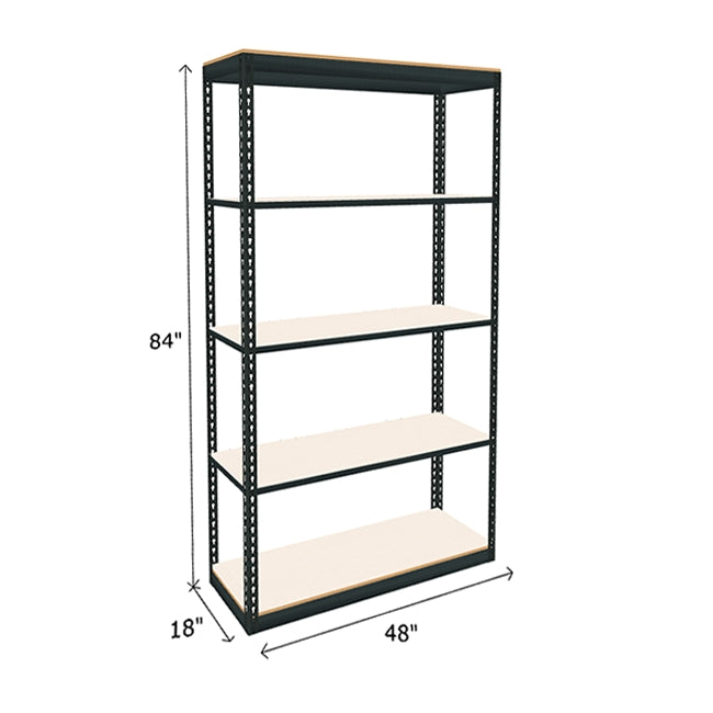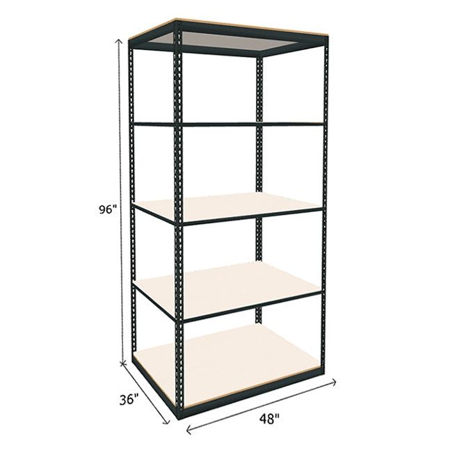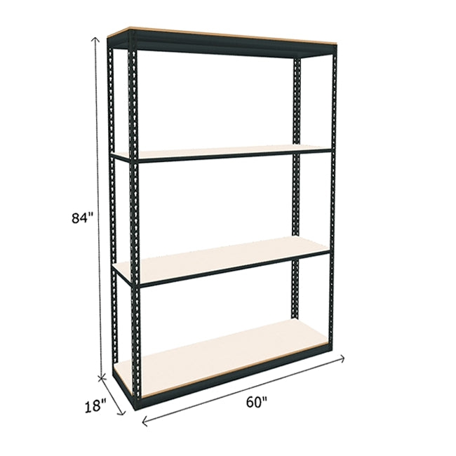 White laminated particle board looks great and provides a durable and smooth shelf surface on this boltless shelving. Each of white melamine shelf features a 600 lb. capacity (based on evenly distributed weight). Double Rivet Beams at top and bottom of unit form a rigid structure without the use of troublesome crossbars creating additional storage space on this industrial boltless shelving. Available in a wide range of sizes, find the boltless shelving to best suited to space and needs. Steel frame color: dark gray. Melamine particle board color: white.