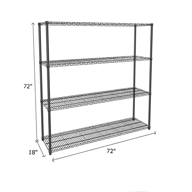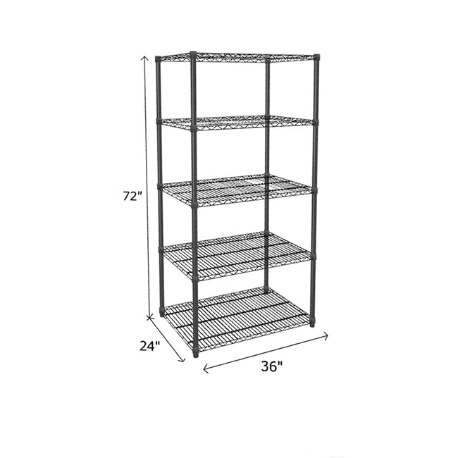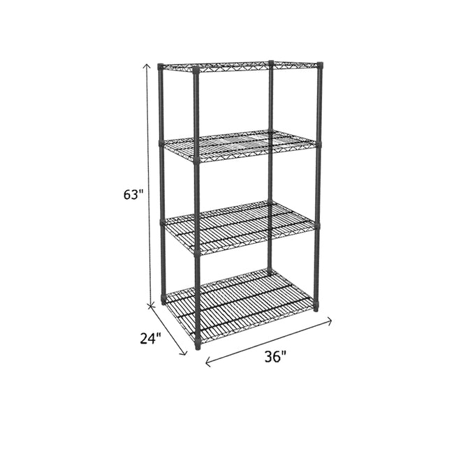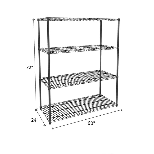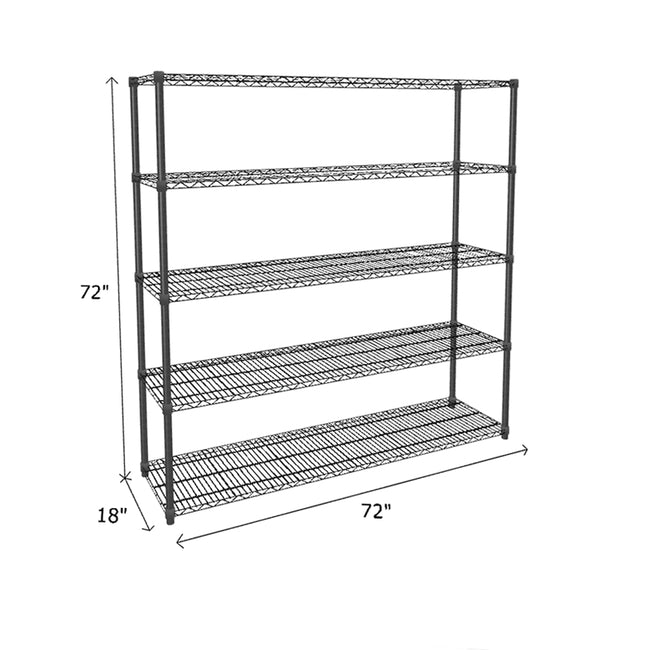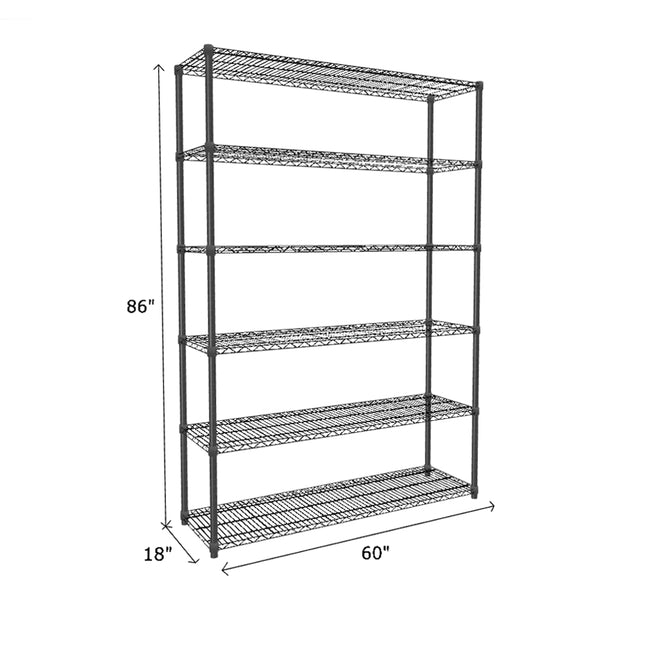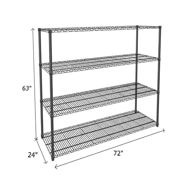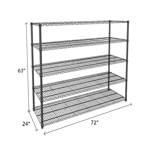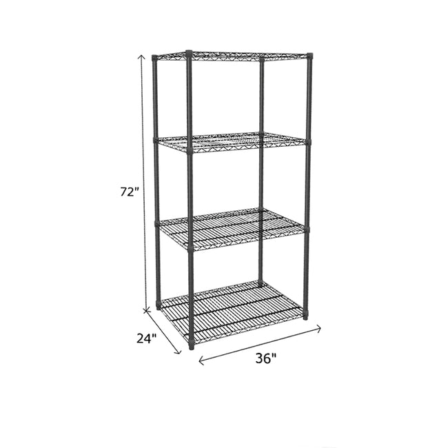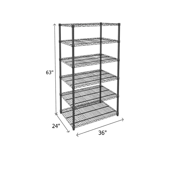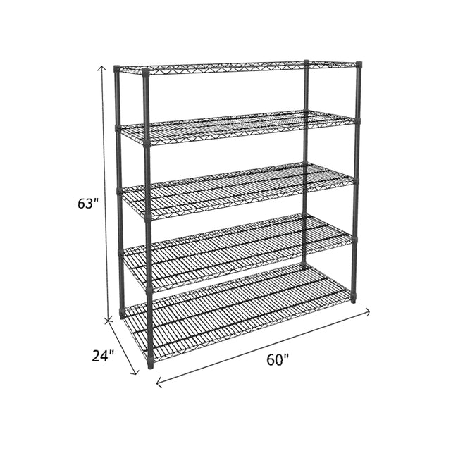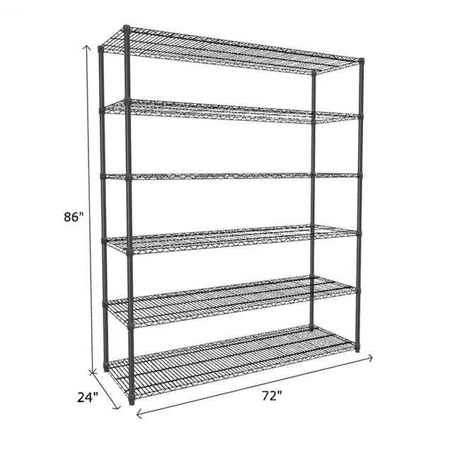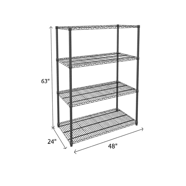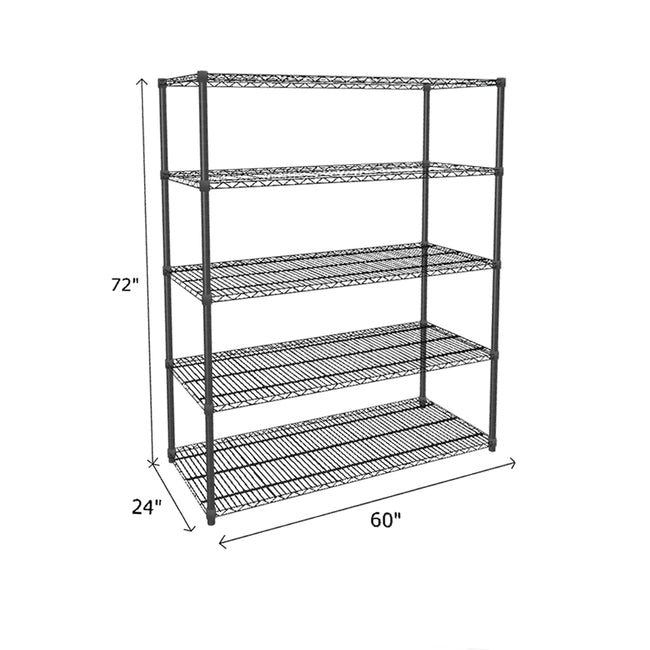 Black wire shelving is powder coated wire shelving made to the same high-quality standards as our chrome wire shelving but is substantially less expensive. Durable powder coated finish is rust and chip resistant. An open design allows more air and light to pass through for added visibility and helps reduce a build-up of dirt and dust. Black wire shelving units are NSF Certified for dry storage making them an excellent choice for many different commercial and industrial applications. Easy to assemble without any special tools, these black wire shelving units are also easy to clean with warm water and dish soap. Be sure to dry thoroughly before adding product. Browse our large selection of sizes to find the ideal height and capacity to fit your needs. Overall unit capacity is 2,000 lbs.