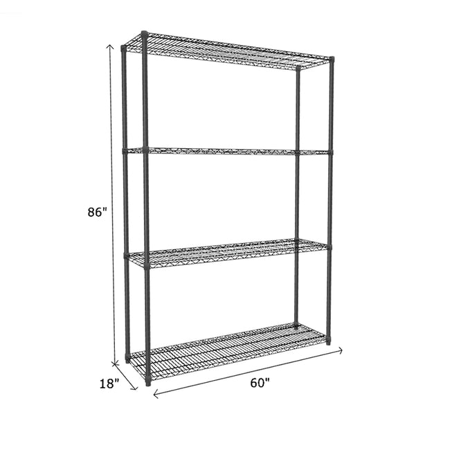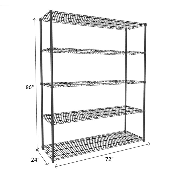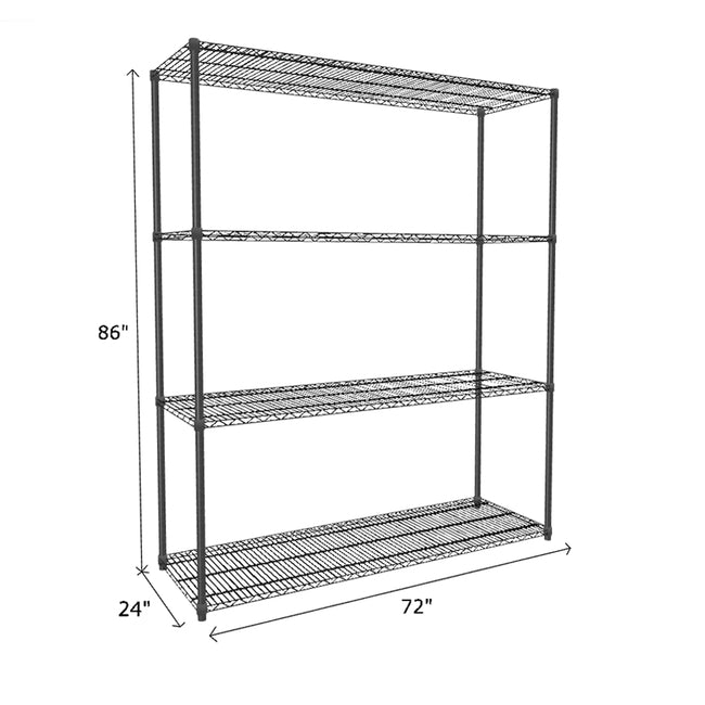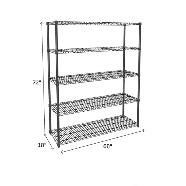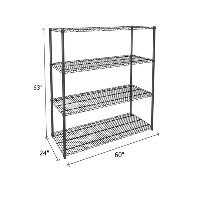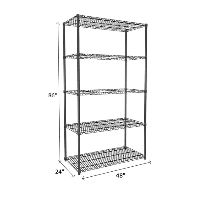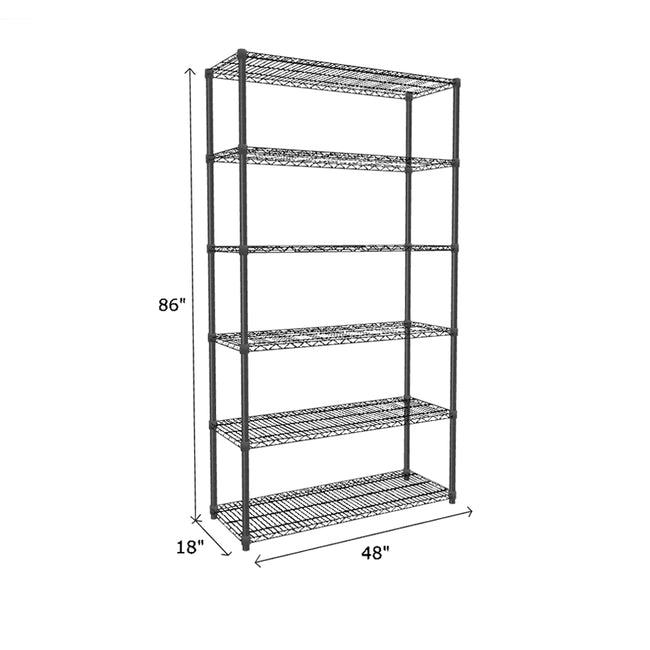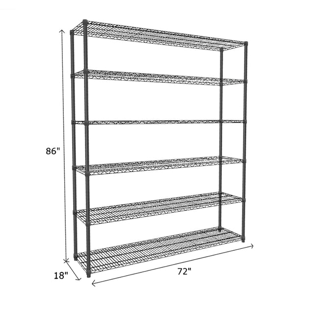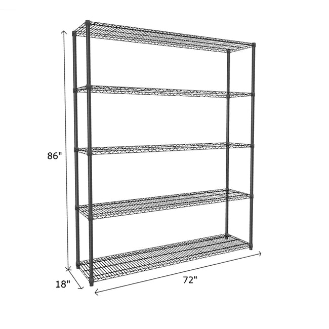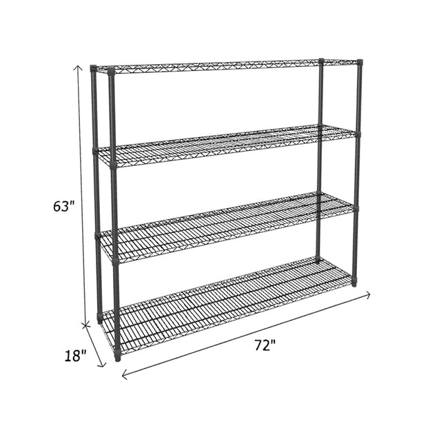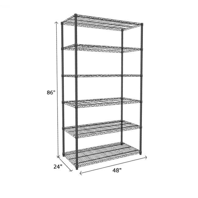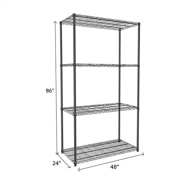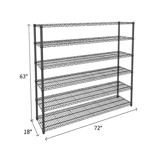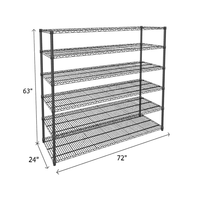 Black wire shelving is powder coated wire shelving made to the same high-quality standards as our chrome wire shelving but is substantially less expensive. Durable powder coated finish is rust and chip resistant. An open design allows more air and light to pass through for added visibility and helps reduce a build-up of dirt and dust. Black wire shelving units are NSF Certified for dry storage making them an excellent choice for many different commercial and industrial applications. Easy to assemble without any special tools, these black wire shelving units are also easy to clean with warm water and dish soap. Be sure to dry thoroughly before adding product. Browse our large selection of sizes to find the ideal height and capacity to fit your needs. Overall unit capacity is 2,000 lbs.