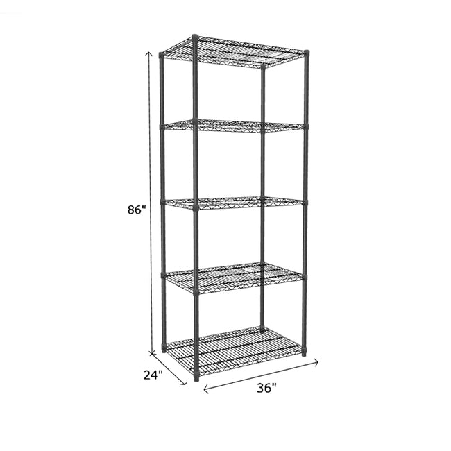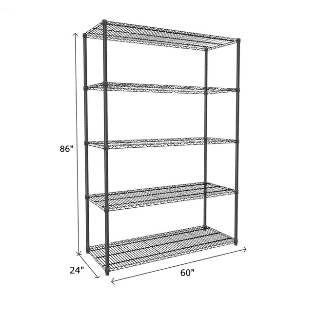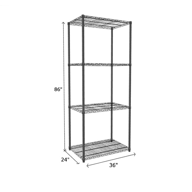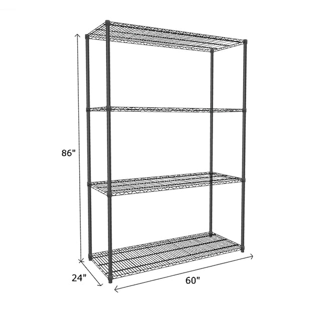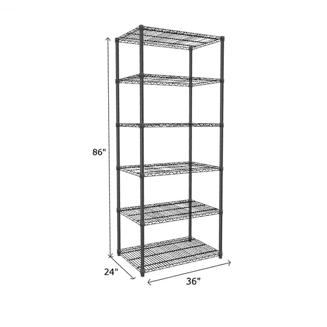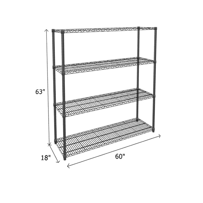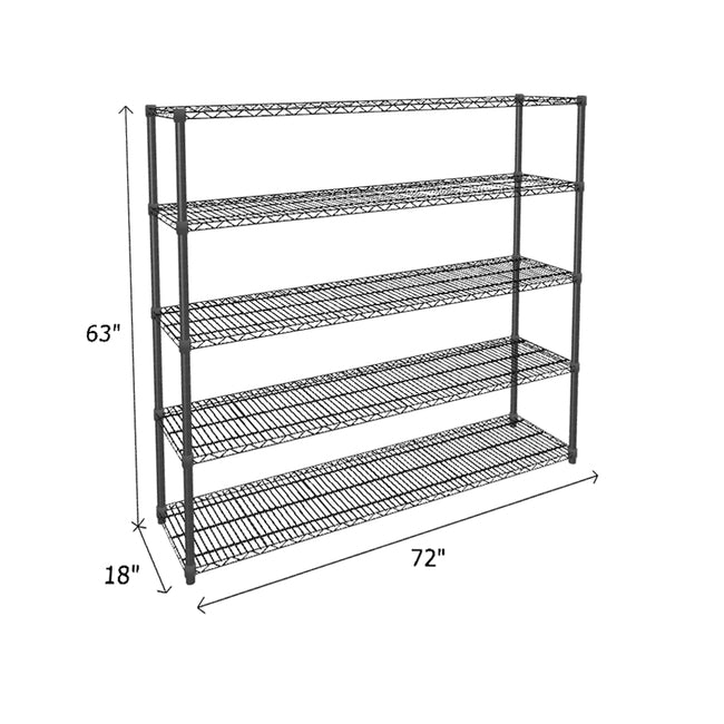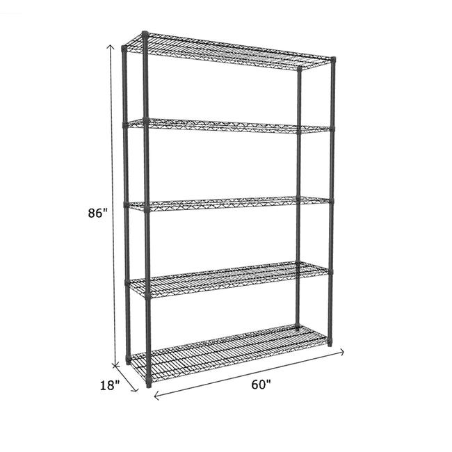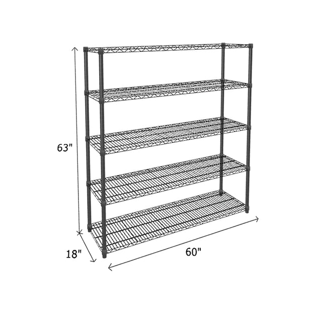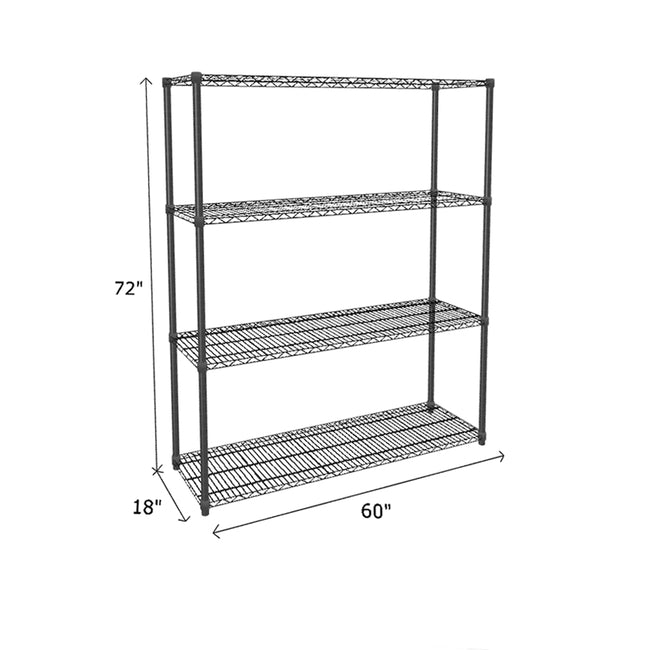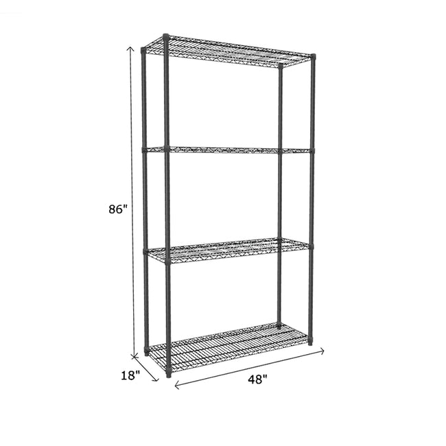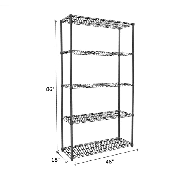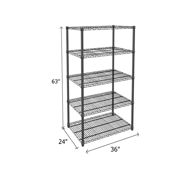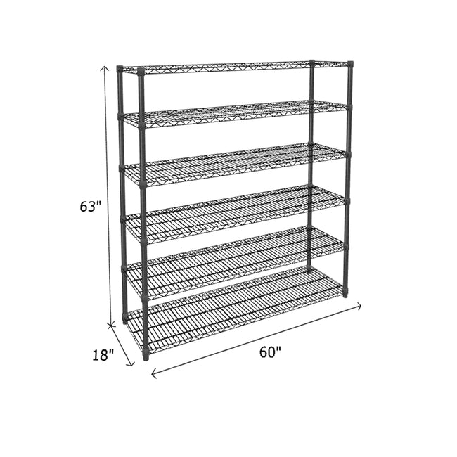 Black wire shelving is powder coated wire shelving made to the same high-quality standards as our chrome wire shelving but is substantially less expensive. Durable powder coated finish is rust and chip resistant. An open design allows more air and light to pass through for added visibility and helps reduce a build-up of dirt and dust. Black wire shelving units are NSF Certified for dry storage making them an excellent choice for many different commercial and industrial applications. Easy to assemble without any special tools, these black wire shelving units are also easy to clean with warm water and dish soap. Be sure to dry thoroughly before adding product. Browse our large selection of sizes to find the ideal height and capacity to fit your needs. Overall unit capacity is 2,000 lbs.